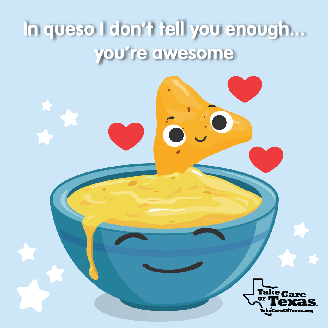 Below you’ll find Texas- and environmental-themed Valentine’s Day cards from Take Care of Texas that you can share with your friends, family, or someone special. There are even some downloadable GIFs for you to use as e-Cards!
